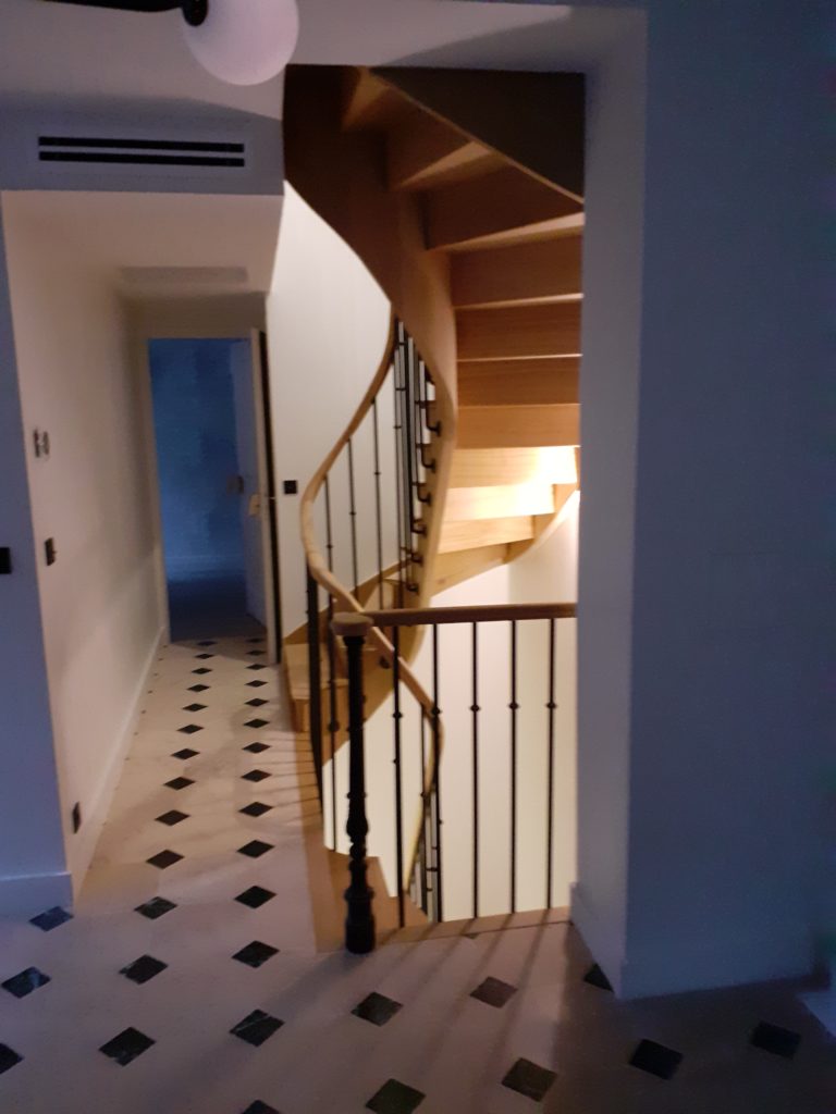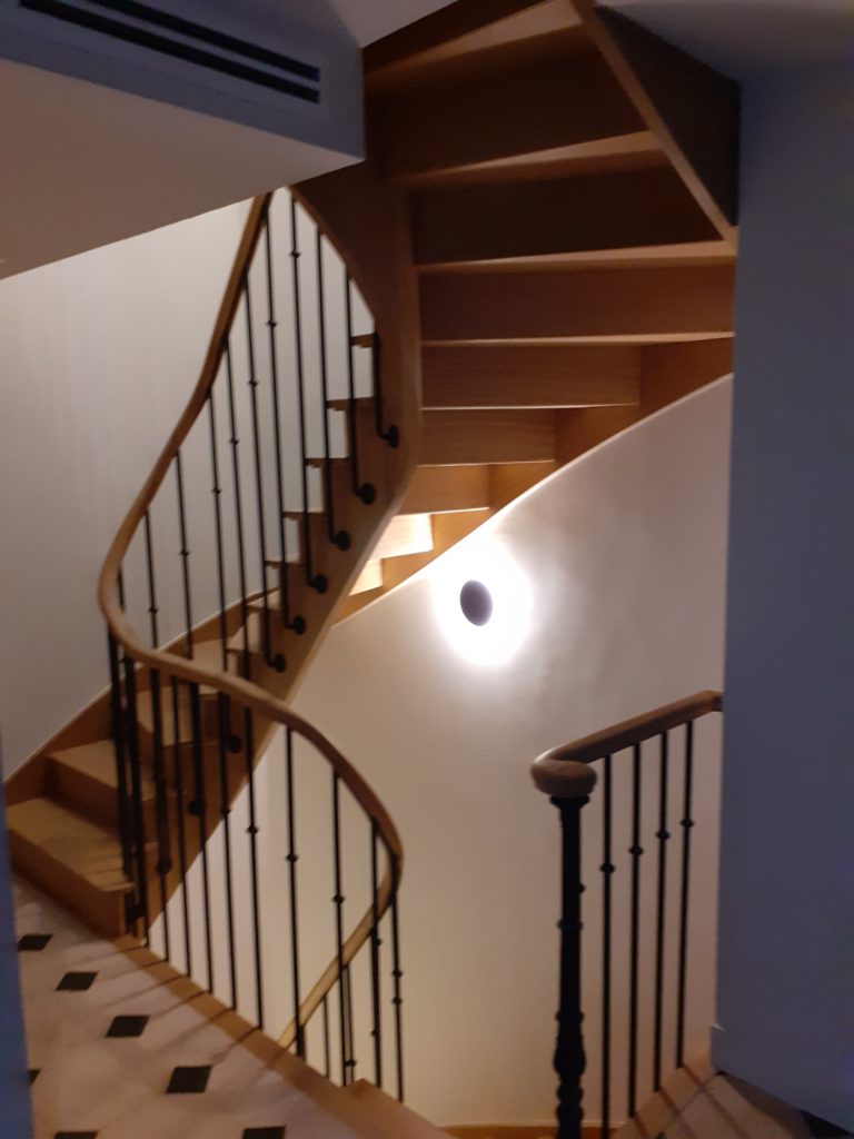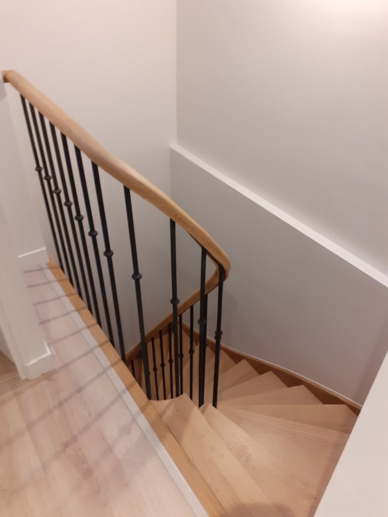 Retrouvez la superbe création de notre client Atelier d’Artois, mélangeant bois et fer forgé, marche en bois. Utilisation d’une lisse en acier, de barreaux en fer forgé et de garnitures acier